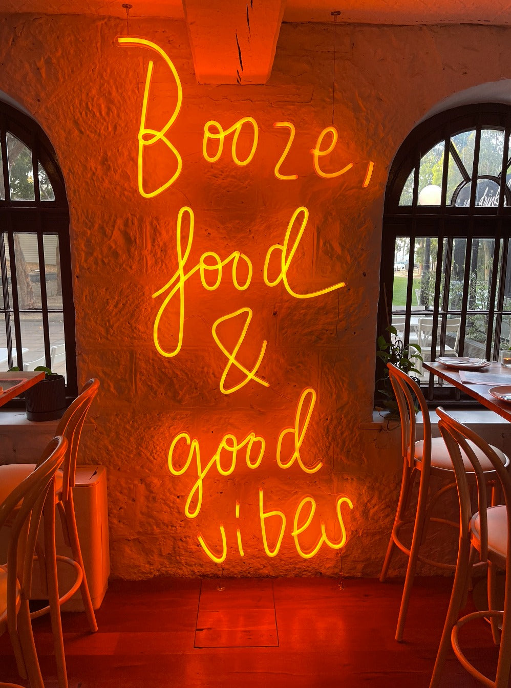 With its playful yet sophisticated design, our "Booze Food & Good Vibes" neon sign is more than just a decoration – it's a declaration of your commitment to creating memorable experiences and spreading joy to all who enter your domain.