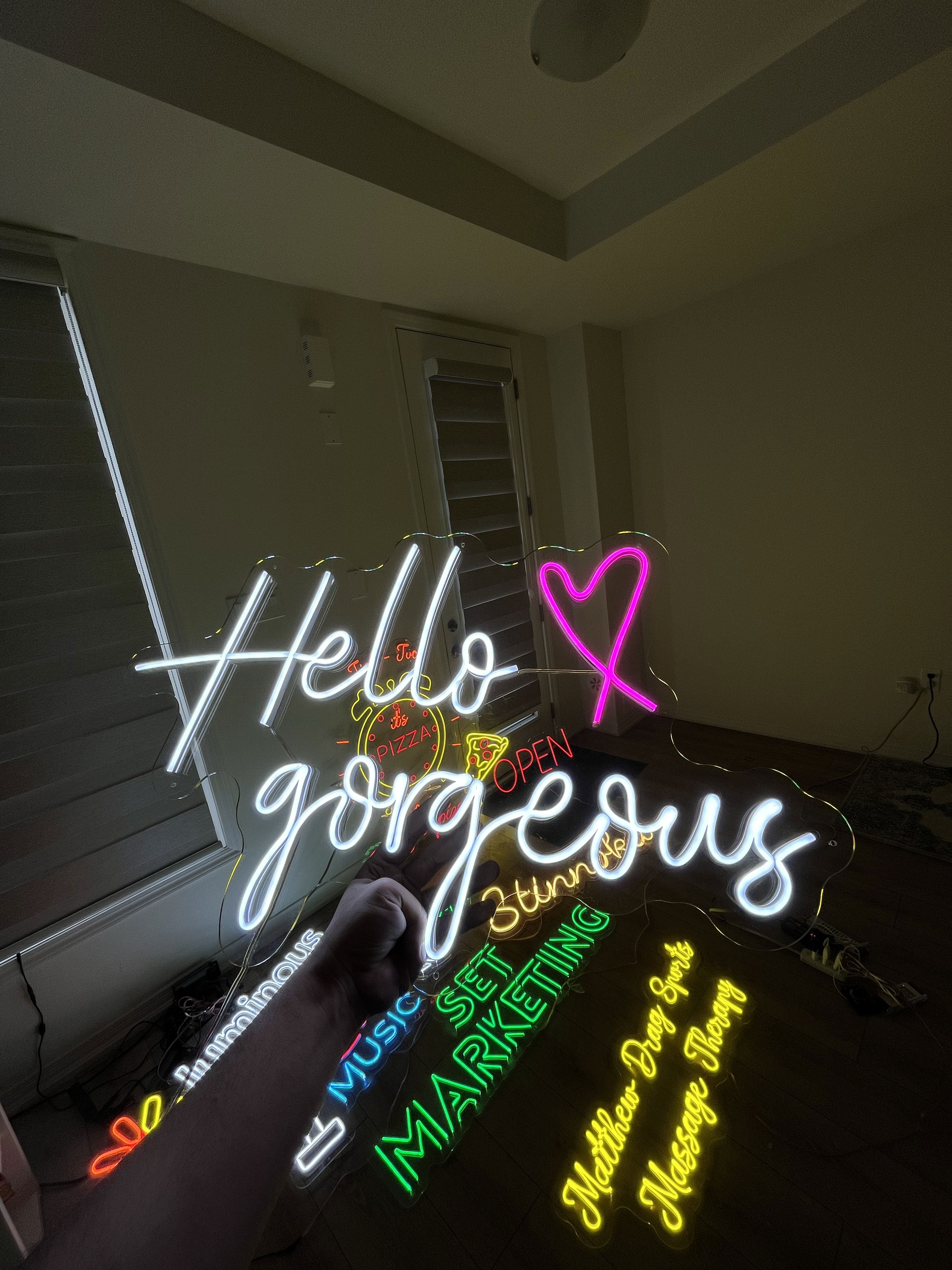 Transform your space into a sanctuary of positivity and confidence with our "Hello Gorgeous" neon sign featuring a heart. It's more than just a decoration – it's a radiant reminder that you are beautiful, inside and out.