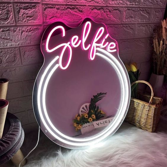 Elevate your selfie station with our Selfie Mirror Neon Sign! Crafted with vibrant neon lights, this sign adds a touch of flair and excitement to any photo-worthy space. Whether you're setting up a photo booth at a party, a trendy café, or a chic salon, our neon sign sets the stage for memorable moments and Instagram-worthy shots. Its eye-catching design and glowing allure draw guests in, inviting them to capture their best angles and create lasting memories. Easy to install and built to last, it's the perfect way to enhance your selfie experience and make a statement. Let your creativity shine - order our Selfie Mirror Neon Sign today and strike a pose in style!